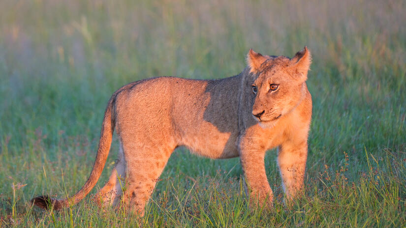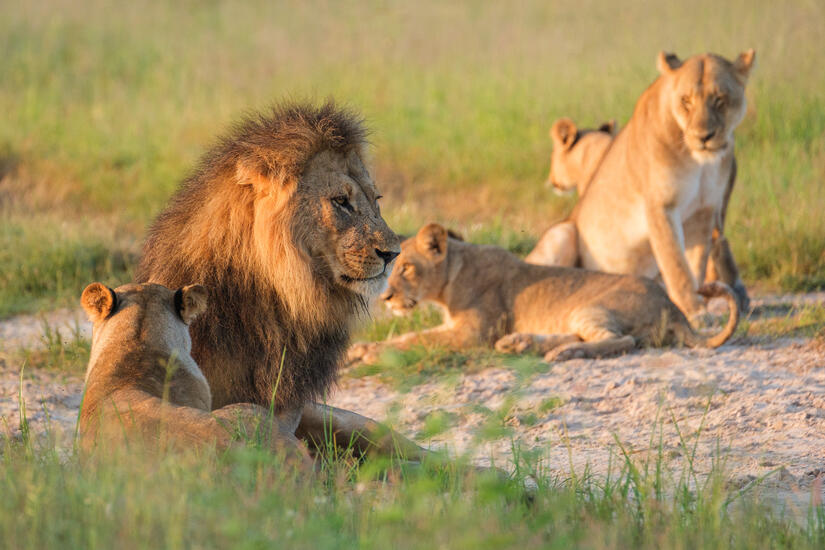 Very shortly after sunrise on the self drive we were lucky enough to stumble on a pride of lions, chilling out in the morning sunshine. This provided us with some really excellent photographic opportunities, and was also wonderful to see. Both of the males were very handsome with the manes and there was also a very young cub.