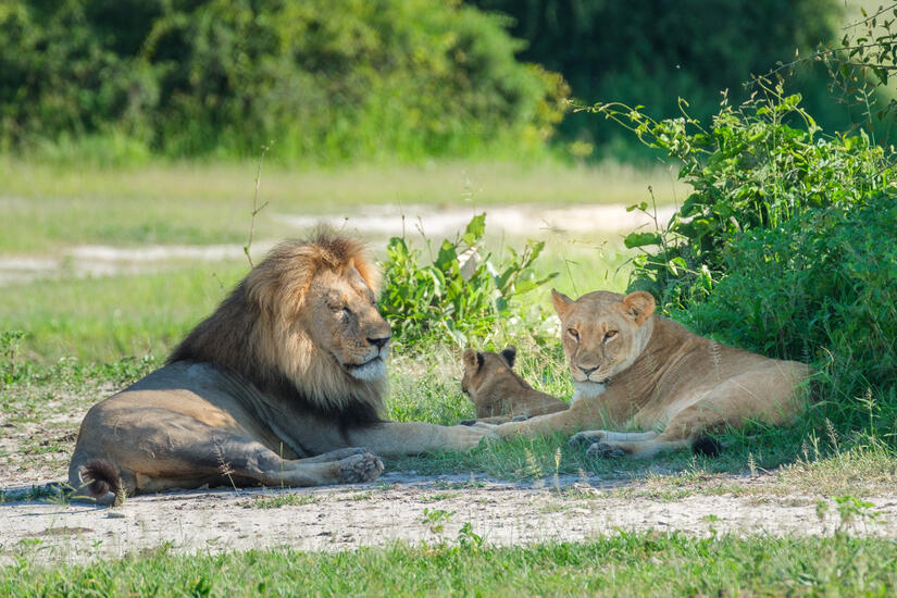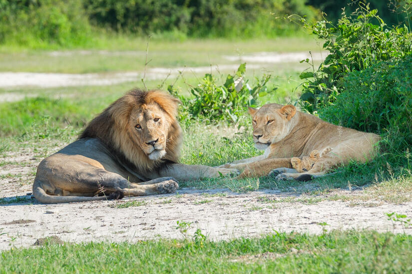 Very shortly after sunrise on the self drive we were lucky enough to stumble on a pride of lions, chilling out in the morning sunshine. This provided us with some really excellent photographic opportunities, and was also wonderful to see. Both of the males were very handsome with the manes and there was also a very young cub.